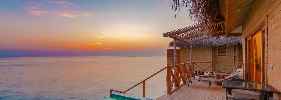 Die ikonischen Wasserbungalows der Malediven stehen auf eleganten Stelzen über den Lagunen. Großzügige Terrassen führen direkt ins Meer. Glasböden im Wohnbereich ermöglichen einen Blick auf die lebendige Unterwasserwelt.